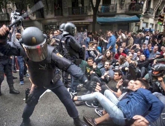 Rajoy je šel po podporo tudi čez ocean in jo od Trumpa zlahka dobil. Nato pa je »demokraciji in pravni državi« situacija ušla iz rok. Ikonografija Španije se je prvega oktobra vrnila v svinčena leta pred začetkom tranzicije, potem ko je dolga leta veljala za zgled mirnega prehoda iz diktature v demokracijo. Med solzivci, vpitjem, udarci, krvavimi obrazi in splošno nervozo je po cestah Barcelone spet zaudarjalo po frankizmu.