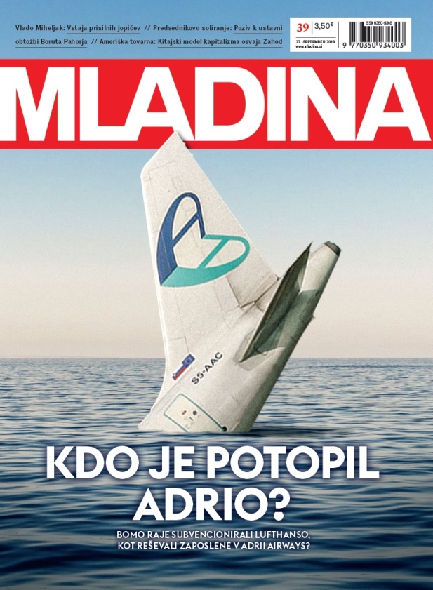 Jutri izide nova Mladina! To je njena naslovnica. Vabljeni k branju! Kdo je potopil Adrio? Bomo raje subvencionirali Lufthanso, kot reševali zaposlene v Adrii Airways? #Mladina39