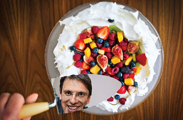 Matevž Kmet je sistematičen človek. Je naravoslovec. Zato so, pravi, recepti Cubo slaščic napisani tako, da so ponovljivi. Po kemijsko. Količine sestavin so natančno opredeljene, prav tako priprava. Kokosova torta z limonino kremo se peče 25 minut pri 175 stopinjah, jabolčni kruhov puding 60 minut pri 160 stopinjah, limetin cheesecake z limono in blagim okusom pomaranče v testu pa pri 150 stopinjah 70 minut. Pri pripravi pasijonkinega ledenega sufleja navodila velevajo, da sladkor, vodo in glukozni sirup segrevamo do 116 stopinj Celzija. »Gostota je odvisna od temperature in časa. Pri sladkornih sirupih voda počasi izhlapeva, vrelišče snovi, ki je že višje kot 100 stopinj, pa narašča. Več ko je sladkorja, višje je vrelišče. In ko izgine vsa voda, ki si jo dodal, se začne izločati voda iz sladkorja. Spet pa ne smeš segrevati predolgo, ker na koncu dobiš oglje in črno posodo za v smeti. Če napišemo, da mešamo, dokler stvar ni primerno gosta, bralcu ne pomagamo. Če pa so stvari določene in to napišeš, dvoma ni.« Kuhinjski termometer zato pri pripravi njegovih receptov hitro postane nov kos v predalu kuhinjskih pripomočkov. Če že ne skoraj nujen. Beljake pri malinovi torti s čokoladnim musom je treba stepati do 60 stopinj, rumenjake pri vaniljevi kremi do 78 stopinj. Po eni strani zato, da uničimo mikroorganizme, pojasnjuje, po drugi strani pa, če rumenjake segrevamo preveč, dobimo vaniljevo omleto. Ne le, da mu je kot kemiku zelo jasno, zakaj do česa pride, zaradi dela v laboratoriju so kemiki tudi tehnično spretni v kuhinji, ne dvomi. »Lažje kuhajo, ker se navadijo, kako recimo meriti temperaturo. Segrevanje mora biti enakomerno, ne sme biti točkovno, kar se zgodi pri segrevanju na plin. Če delaš na električni plošči, je dno bolj segreto kot obod. Zato mešaš in zagotavljaš homogenost snovi. Potem moraš paziti, da temperaturo meriš na točki, kjer je najmanj vplivov, torej na sredini. Že tako se zgodi, da ob robovih pride do pregretij in krema na robovih zakrkne.« Ok, tehnika. Kaj pa uporabljene sestavine? Če beli in rjavi sladkor ter med še zvenijo kot znana sladila, so sladkor dark muscovado za slivovo pito z marcipanom, light muscovado za datljevo torto s kokosom ali kakijev kipnik z brusnicami, demerara za kumkvatov kipnik ali glukozni sirup za sladolede že sestavine, za katere nemalo kdo sliši prvič. Resno, bi rekel marsikdo. Kje je torej tu smisel, razen v tem, da posameznik ugotovi, kako širok je spekter kuhinjskih sestavin?! »Sladkorji se razlikujejo tudi po okusu. Pri rjavih je važno, kako so rafinirani. V belem sladkorju ni melase, v temnih pa je in daje okuse po medu ...« Kompliciranje? Morda, a z dobrim razlogom. Sploh pa so vse sestavine na voljo v večini bolje založenih trgovin, na kar je bil Kmet, kot večkrat poudarja, pri receptih vedno pozoren. Če je light muscovado pri pinjolovem nadevu za pito s suhim sadjem tam zaradi okusa, je pri pripravi sladoledov glukozni sirup prisoten zaradi teksture: »Glukozni sirup je glukoza z zelo malo vode. Glukoza spada med sladkorje in je monosaharid, torej jo sestavlja ena molekula. Pri sladoledih in sorbetih se glukozni sirup dodaja zato, ker pri kristalizaciji nastajajo manjši kristali in je sladoled bolj kremast. Imamo pa tudi disaharide in polisaharide, kar je recimo škrob. Škrob je ogromna veriga sladkornih molekul, in ko delaš kruh, kvasovke razbijajo te dolge verige v enostavne sladkorje in kruh dobiva okus.« In mimogrede spregovori o kruhu. Živilo, ki je na prvi pogled videti enostavno, saj v osnovi vsebuje kvas, vodo, moko in sol, spet odpira novo področje peke, ki zahteva določeno število eksperimentov, preden posameznik dobi zadovoljiv rezultat. Kmet recimo v Sloveniji pogreša prave francoske bagete, zato se je v Parizu udeležil tečaja peke klasičnih francoskih vrst kruha. Kot pravi, obstaja več razlogov, zakaj je dober kruh težko pripraviti: »Odvisno je, za kateri kruh gre. Navadno so potrebne tri stopnje. Prva je hidratacija, ko zmešaš moko in vodo in ju 20 minut pustiš počivati. Masa potem vzhaja navadno dvakrat po eno uro do uro in pol. Pravilo je, da se volumen podvoji. Na čas in izid pa pomembno vplivata temperatura prostora in vlaga, ki ju je težko nadzorovati, enako je težko nadzirati kvas, ker gre za živ organizem.« Sploh francoske bagete denimo potrebujejo dolgo, več ur trajajoče vzhajanje, pravi, bistvena stvar za dober okus pri kruhu pa je, da daš kvasovkam dovolj časa, da škrob razgradijo v enostavnejše sladkorje.