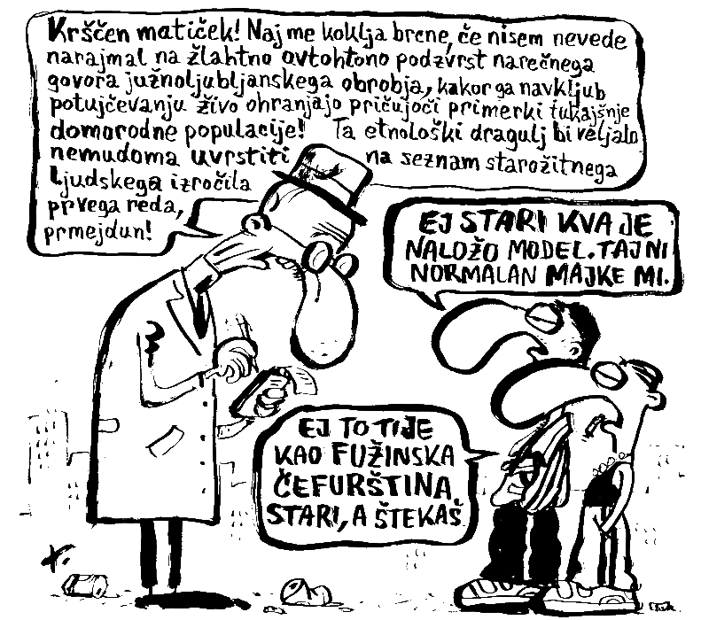 „Zelo rad poslušam narečne govore, vendar pa se zdaj pojavlja narečje, jaz mu rečem fužinščina, ki sploh ni več slovenščina. In ljudje dobivajo celo nacionalne nagrade za tako literaturo.“