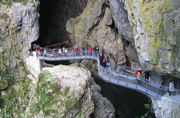 Turistično pot skozi Mahorčičevo in Mariničevo jamo ter Malo dolino so uredili že leta 1933. Leta 1965 je to območje zajela velika poplava, ki je poškodovala pot in ograje po tem delu Škocjanskega parka. Lani so postavili novo jekleno vitko konstrukcijo mostu, ki se prilagaja terenu in ki zagotavlja ustrezne odmike od naravnih ovir v samem razponu mostu, umakne konstrukcijo zunaj območja padanja ledenih sveč in kamenja, obenem pa zaradi nje obiskovalci veliko bolj atraktivno doživijo prečkanje globeli v izrazito jamskem okolju. Konstrukcija ima v vzdolžni smeri zasnovane stopnice in podeste v enakomernem rastru, s katerimi premosti višinsko razliko 4,5 metra. V razponu je v osrednjem delu konstrukcija dodatno elastično podprta z dvema poševnima nateznima palicama in sidrana v kompaktno apnenčasto skalo v južni steni vhoda v Mariničevo jamo.
