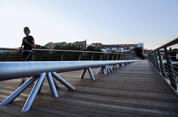Most za pešce in kolesarje čez reko Krko je najkrajši peš in kolesarski dostop iz mestnega središča v trgovski center ŠRC Portoval (ista avtorja arhitekture) in povezuje stare in nove športno-rekreacijske površine ob reki. Zaradi višinske razlike je na levem bregu predviden dostop na most prek položne klančine in stopnic, na desnem bregu pa je v izteku mostu urejena čolnarna. Pod mostno konstrukcijo je speljan kanal za odvod fekalnih odplak.