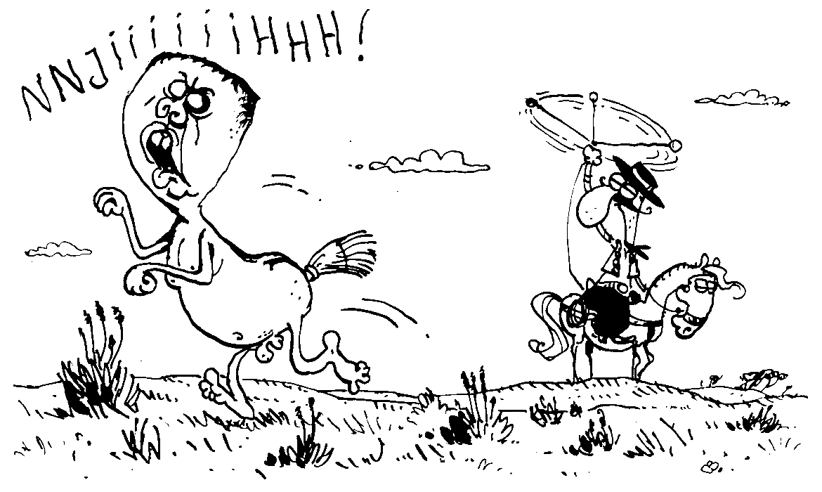 Najiskrejši član parlamentarne konjenice Franc Pukšič - Poni je prepričljivo demantiral Previrantove insinuacije o nepotrebnosti svojega potovanja v Južno Ameriko. (končno se bo lahko razdivjal na argentinskih pampah press)