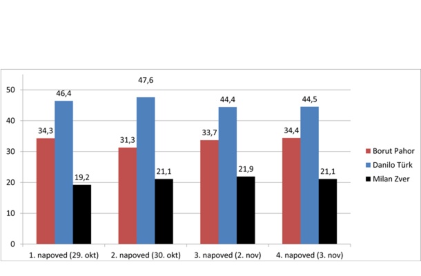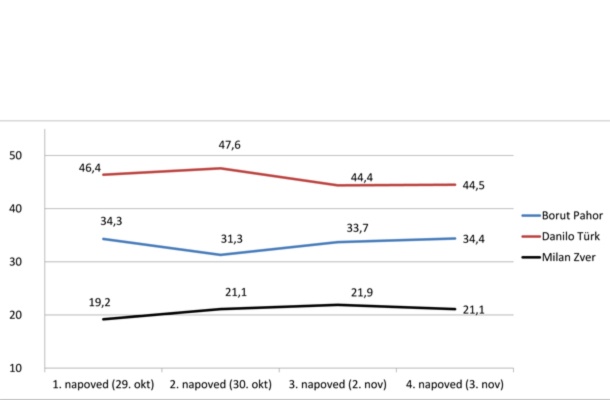 Opazen je sicer nekaj dnevni trend rasti podpore Borutu Pahorju, a je ta še premalo značilna, da bi lahko že trdili, da se bo zelo približal Danilo Türku. To se sicer še vedno lahko zgodi, če ne v prvem, pa morda v drugem krogu volitev za predsednika republike.