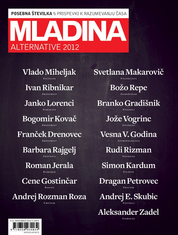 Lani je tednik Mladina prvič izdal posebno izdajo Alternative. Bil je eksperiment, s katerim smo želeli ugotoviti, ali bi ljudje sprejeli revijo s tehtnimi in analitičnimi besedili, izdaja pa je postala velika uspešnica. Predstavitev letošnje izdaje, na katero smo povabili tudi avtorje, je bila v petek v klubu Cankarjevega doma.