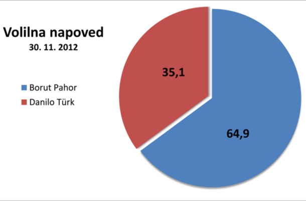 Nato smo anketirance vprašali, koga bodo volili. Na to vprašanje jih je 51 odstotkov odgovorilo, da bodo volili Boruta Pahorja, 27,4 odstotka pa Danila Türka, 21,5 odstotka pa je bilo še neodločnih. Prav te smo nato vprašali še, kateri izmed dveh kandidatov jim je bolj simpatičen: 4,3 odstotkov izmed vseh je reklo, da je to Pahor, 2,5 odstotka pa, da je to Türk, 12,1 odstotka jih je tudi po tem vprašanju ostalo neodločenih. Iz teh podatkov smo potem dobili volilno napoved, da bo Pahorja podprlo 6,9 odstotka volivcev, Türka pa 35,1 odstotkov.