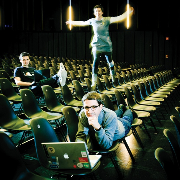 Koliko teorije. In koliko načrtov! In kuje jih le tričlanska ekipa, ki ima vsem ob tem še službe – Eva in Luka imata raziskovalno-idejno agencijo Memo Institut, Marko pa je snovalec razpisov za projekte. Coworking je torej njihova druga, neplačana služba. A ne preseneča, da jim je prav ta omogočila skupno so-delovanje. Eva in Luka sta se s coworkingom pobliže spoznavala na Dunaju in v Berlinu, nato pa ustanovila Slovenia Coworking. Marka je navdušil ustanovitelj londonskega Huba, coworking prostora, osredotočenega na socialno podjetništvo, in ko se mu je ponudila priložnost za delo v Hubu v Pragi, jo je zgrabil. Potem so po naključju izvedeli drug za drugega in se povezali.