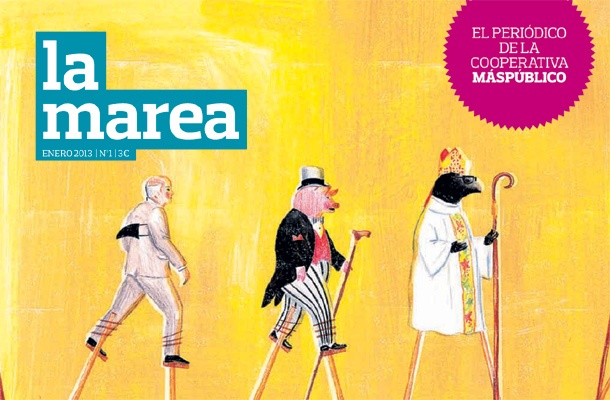 La Marea, kar pomeni plimovanje, ni klasični mesečnik, je časopis na 64 straneh, ki je na prodaj za tri evre. Načelo uredništva je »obramba javnega, enakosti in sekularnosti, gospodarske enakosti, zgodovinskega spomina, častnega dela, okolja, pravice do stanovanja in brezplačne kulture… družbenih gibanj in demokratične prenove«. Na naslovnici prve številke, ki je izšla januarja letos, so bili upodobljeni politik, bankir in duhovnik v beli obleki na hoduljah, ki tako hodijo nad ljudmi. Pod njimi je bil natisnjen naslov: Zakoni v službi kapitala: Skrivne povezave med vladami, bankami in velikimi podjetji postajajo standardi, ki škodujejo družbi. V naslovni zgodbi novinarji opisujejo povezave med velikimi podjetji in politiki, izpostavljajo člane vladajoče ljudske stranke in opozicijskih socialistov, ki so zasedli najvišje položaje v bankah, energetskih, telekomunikacijskih in drugih podjetjih.