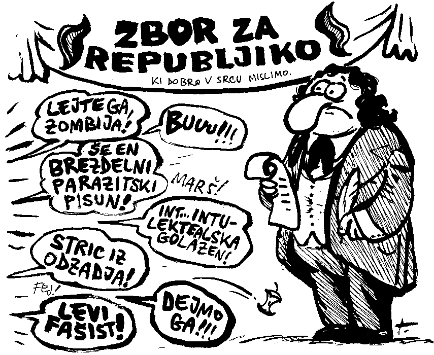 »V Sloveniji gre predvsem za spopad med dvema kontinuitetama z rajnko Jugoslavijo: med kontinuiteto, ki stavi na vrednote socialne pravičnosti, in kontinuiteto, ki stavi na popoln družbeni nadzor policijske države.«