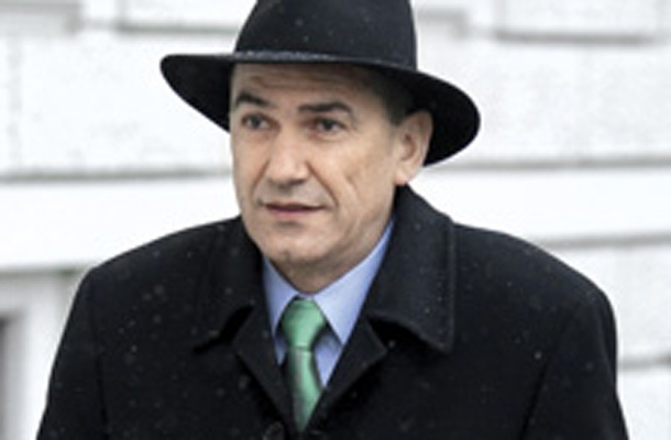 Janez Janša je na sojenje v zadevi Patria prišel z novo kravato. Tradicionalno rumeno je zamenjala živo zelena, na kateri piše I FEEL SLOVENIA.
