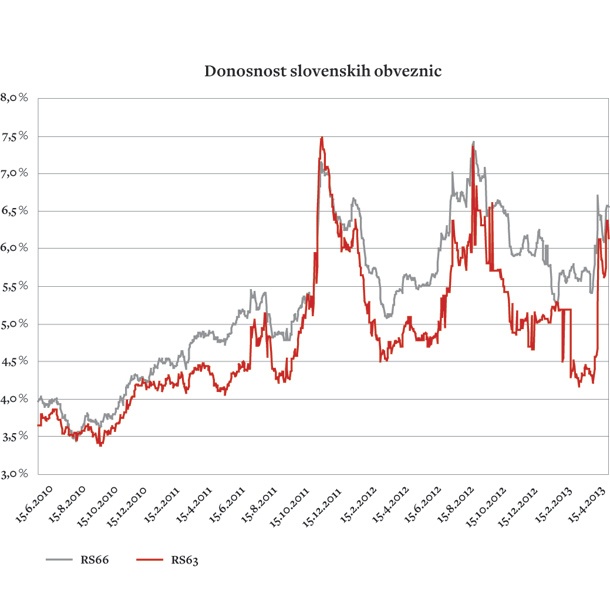 Vpogled v zgodovinske podatke o zahtevani donosnosti na dve izmed najbolj reprezentativnih slovenskih državnih obveznic (obveznica RS66 zapade 9. septembra 2024, obveznica RS63 pa 6. februarja 2019) razkrije, da sta se meji sedmih odstotkov, torej tisti magični meji, ko naj država ne bi bila več sposobna odplačevati svojih dolgov, najbolj približali in jo celo prestopili v trenutkih, ko so politiki govorili ali delali največje neumnosti.