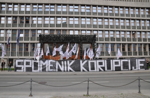 Akcijo so v zgodnjih večernih urah končali tam, kjer so jo začeli - v Ljubljani, kjer so pred mestno hišo in parlamentom v tišini razvili transparent: SPOMENIK KORUPCIJE.(STA, mh)