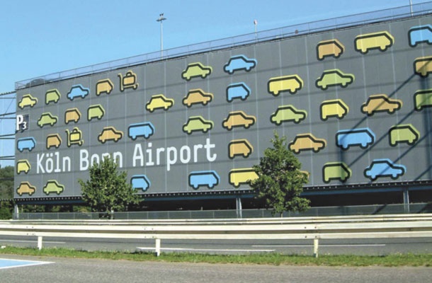 Letališče Köln - Bonn.  Letališče čarterskih poletov, zato tudi grafična podoba in označevalni sistem narekujeta sproščeno okolje