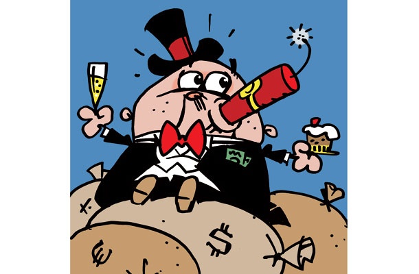 V današnjem svetu ni proizvodnja in trgovina vir za bogatenje, ampak manipulacije in goljufije na globalni ravni. »Povedano z drugimi besedami, opravka imamo z institucionalizirano krajo, ki je vključena v finančni sistem. To ni nekaj, kar bi lahko opisali kot akumulacija kapitala iz produktivnih procesov, niti nekaj, kar bi nastalo z delom teh bogatih ljudi,« je v pogovoru za Press TV dejal profesor Michel Chossudovsky. Vir za bogatenje je razgradnja in uničenje realnega gospodarstva, kjer so majhna in srednje velika podjetja prisiljena bankrotirati. Bogatenje vodi do izločitve finančnega sistema iz realnega gospodarstva in masovne koncentracije lastništva.