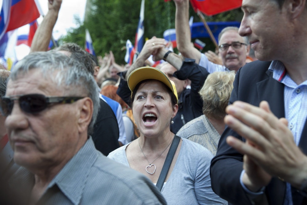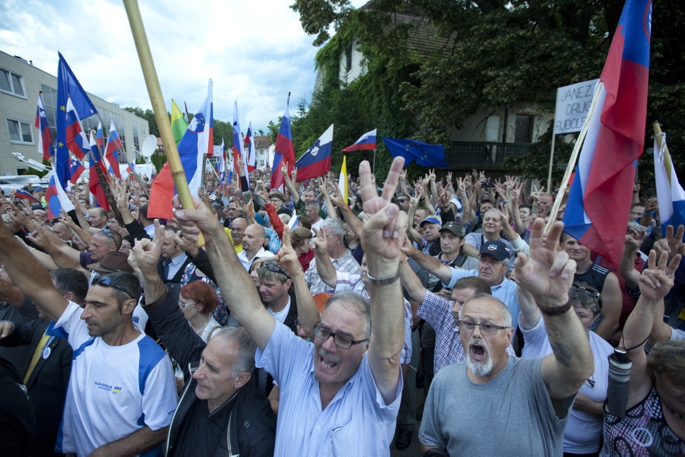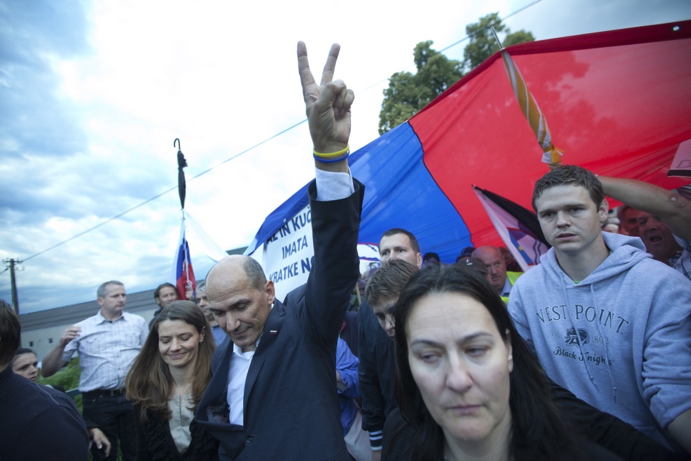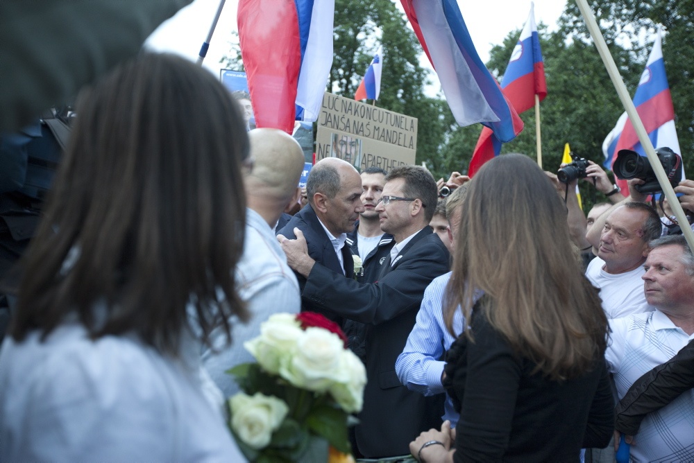 Ko je Janša vednarle dospel v Slovensko vas, so se na improviziranem odru zvrstili govori v njegovo podporo.