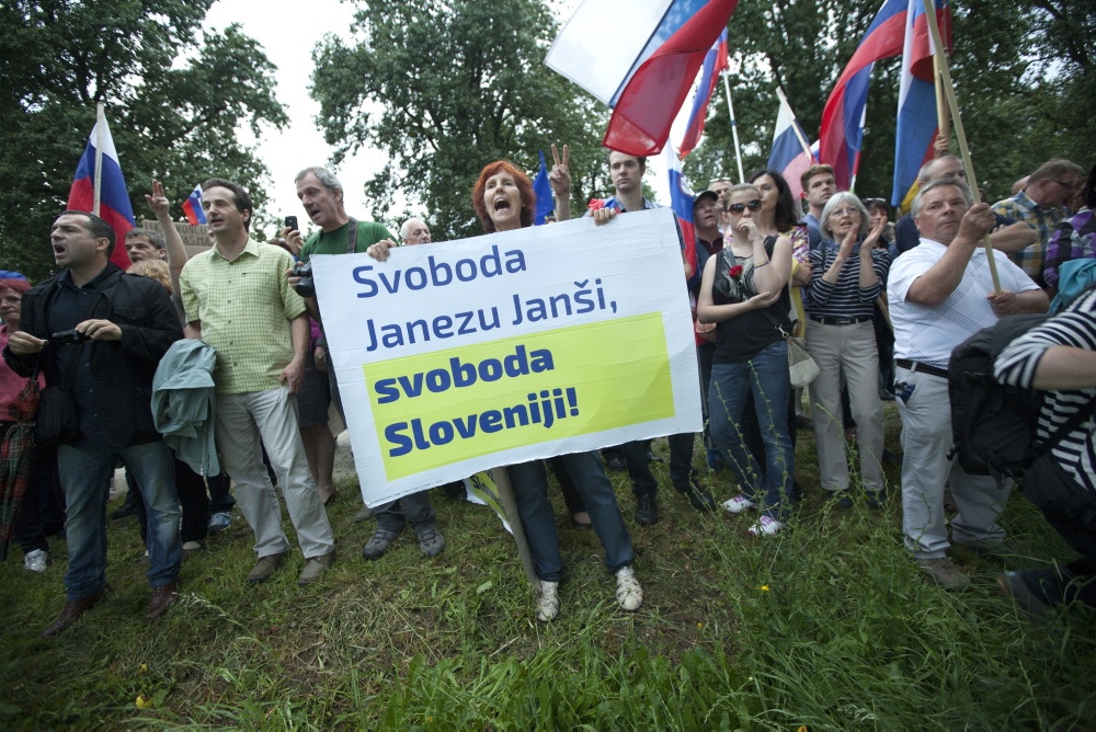 Na poti na Dob je sicer Janšo, ki bi se mu v vsaki normalni demokraciji politična pot vsaj začasno končala že ob začetku sojenja, pri nas pa bi ga nekateri še po pravnomočni obsodbi radi znova videli na premierskem položaju, v Trebnjem pozdravljal jumboplakat s sloganom "Danes Janša, jutri ti". Svoje razočaranje je na transparentih in z vzkliki ogorčenja na zborovanju v Slovenski vasi izrazilo več kot 500 podpornikov obsojenega.
