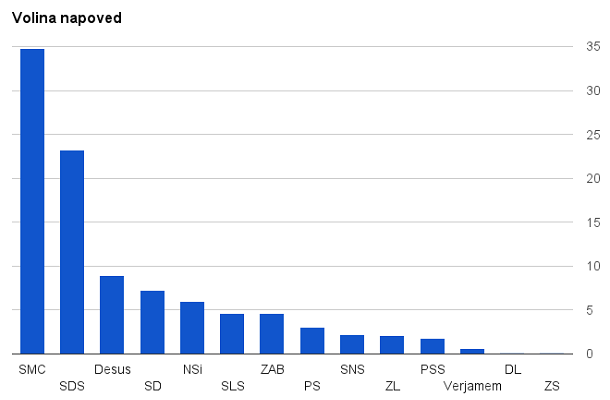 Kaj torej kaže prvi »tracking poll«? Kaže, da je Stranka Mira Cerarja (SMC) v odločilni prednosti pred vsemi ostalimi. Če bi bile ta vikend volitve, bi SMC dobila kar 34,8 odstotkov glasov, kar je za Slovenijo izredno visok rezultat; največ je doslej leta 2000 dobila stranka LDS, in sicer 36 odstotkov.