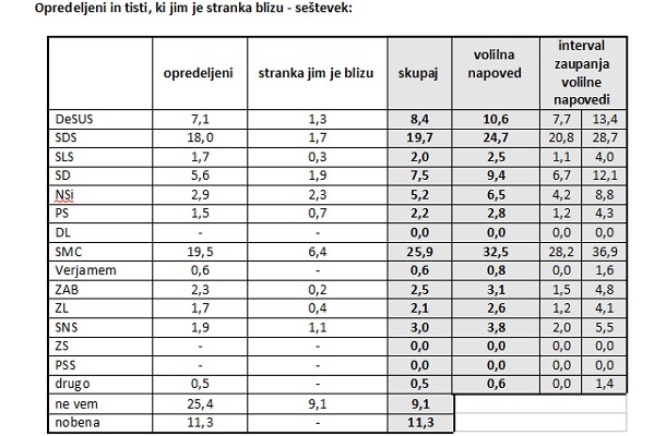 - razvrstitev političnih strank je najverjetneje dokončna. Zmagala bo SMC (vprašanje sicer, s kakšno razliko), druga bo SDS, sledijo ji DeSUS, SD in NSi.