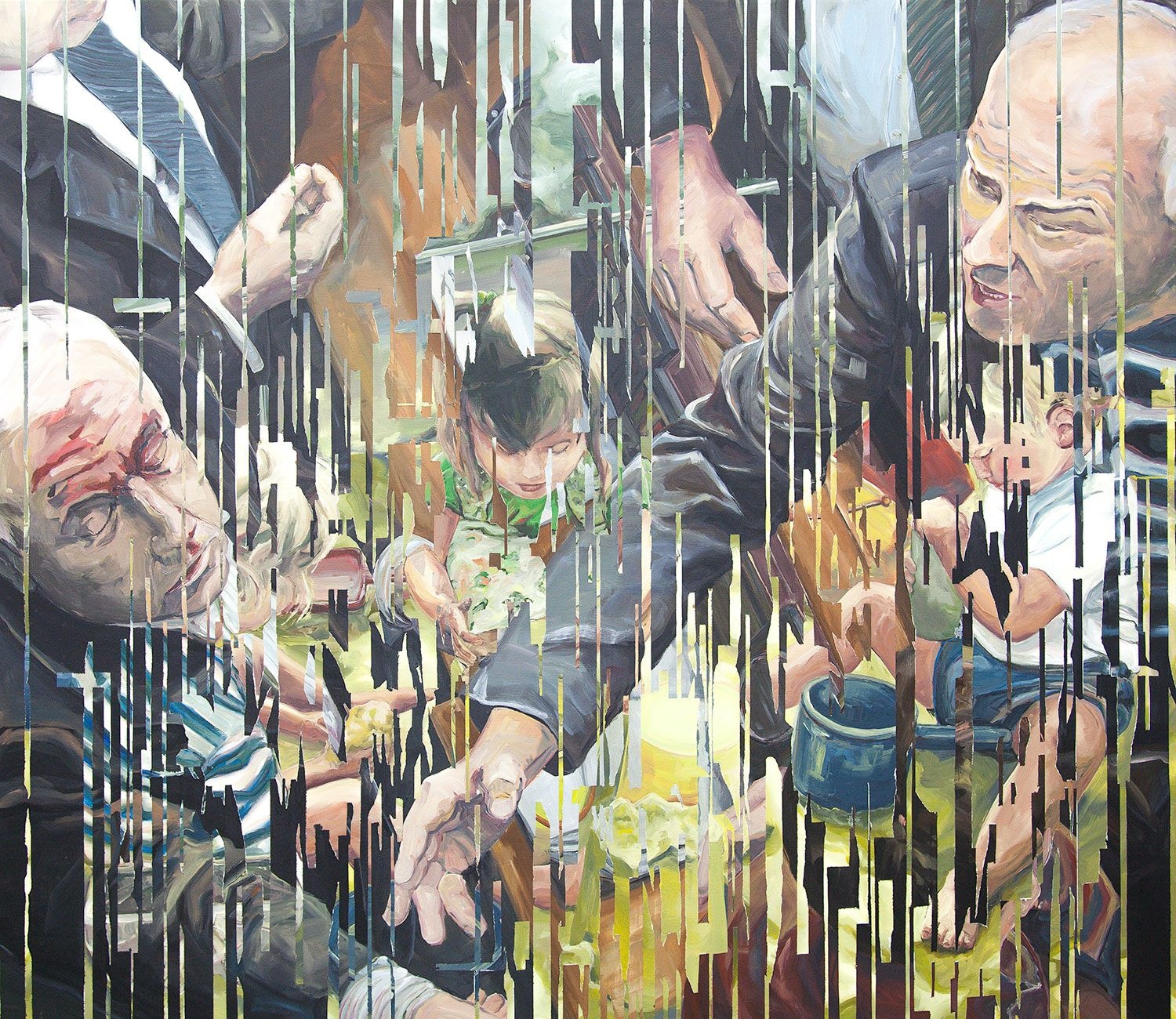 Na razstavi so predstavljene digitalne podobe (v formatu oziroma resoluciji kot jih najdemo na spletu), ki so podlaga avtorskih delom. Urhova prenaša te "odslužene" podobe v slikarski medij, saj kot pravi "nosi ta težo človeške prisotnosti, v polni ločljivosti, v naravni velikosti in v realnem času." Končni rezultat je izjemno prepričljiv vtis kolažiranja razrezanih fragmentov, pri čemer umetnica združuje podobe, ki nimajo logične povezave. Gre za premišljene kombinacije, ki jih sprva preizkusi v računalniški skici in jih nato mojstrsko prenese na platno.