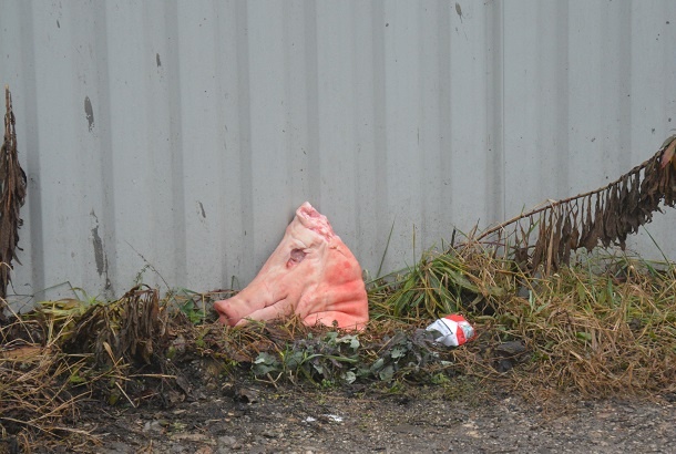 Na gradbišču Islamskega kulturnega centra svinjske glave