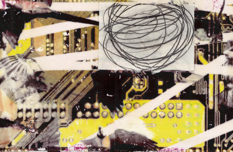 Po besedah kuratorice Lare Plavčak je tokratna razstava z naslovom Vozli "sestavljena iz manjših platen premišljenih kompozicij, ki gledalca vabijo, skorajda silijo, k sami izkušnji slike, ki vozla in kombinira tako klasične slikarske pristope polnih površin, kolažirane dodatke grafitnih risb in računalniškega tiska kot pojmovanje platna v njegovi materialnosti, v kateri se nanosi barve mestoma luščijo in razkrivajo razpadanje, izginjanje. Odsotnost monumentalnosti in prepoznavnih popkulturnih subjektov nakazuje deziluzioniran in kritičen pogled na informacijsko dobo, ki obljublja neskončno nenehno dosegljivost vsega mogočega, a se uklanja tako kapitalu kot konkretnim geopolitičnim razmeram."