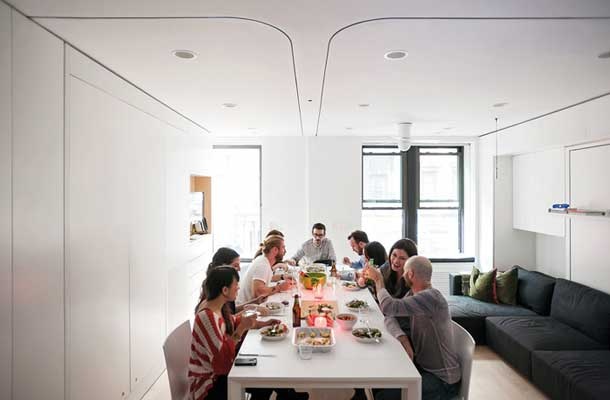Arhitekt Graham Hill je svoje bivališče na Manhattnu opremil z izvlečnimi funkcionalnimi elementi, ki mu na majhni površini omogočajo vse aktivnosti kot v večjem stanovanju.