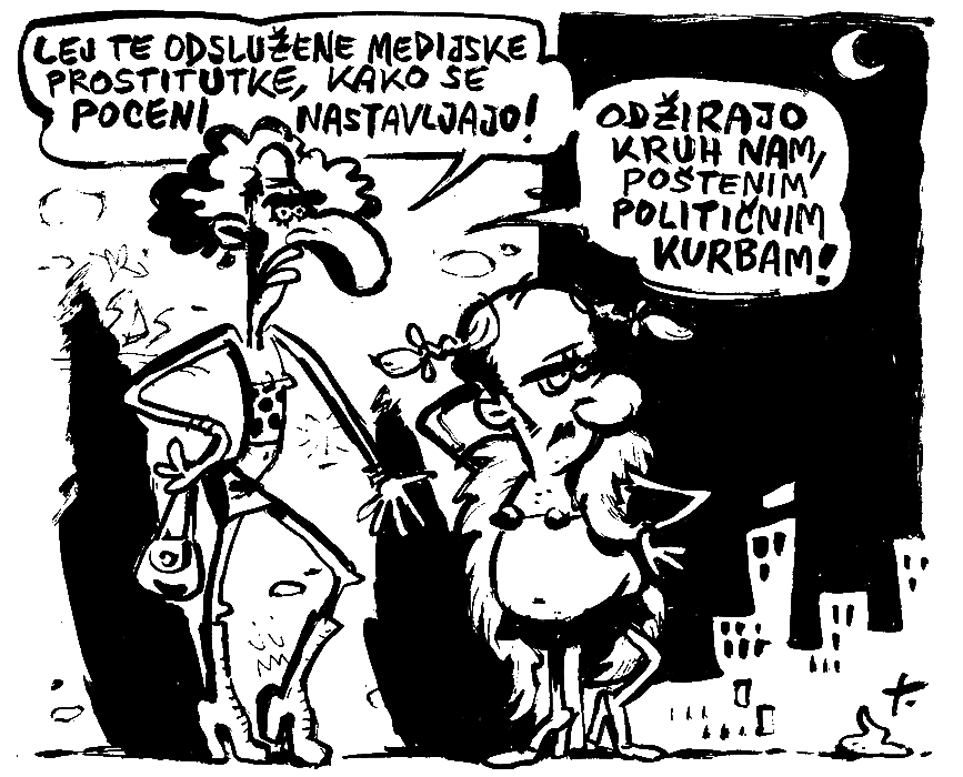 »Na neki FB-strani javne hiše ponujajo poceni usluge odsluženih prostitutk Evgenije C in Mojce PŠ. Eno za 30 €, drugo za 35 €. #ZvodnikMilan.«