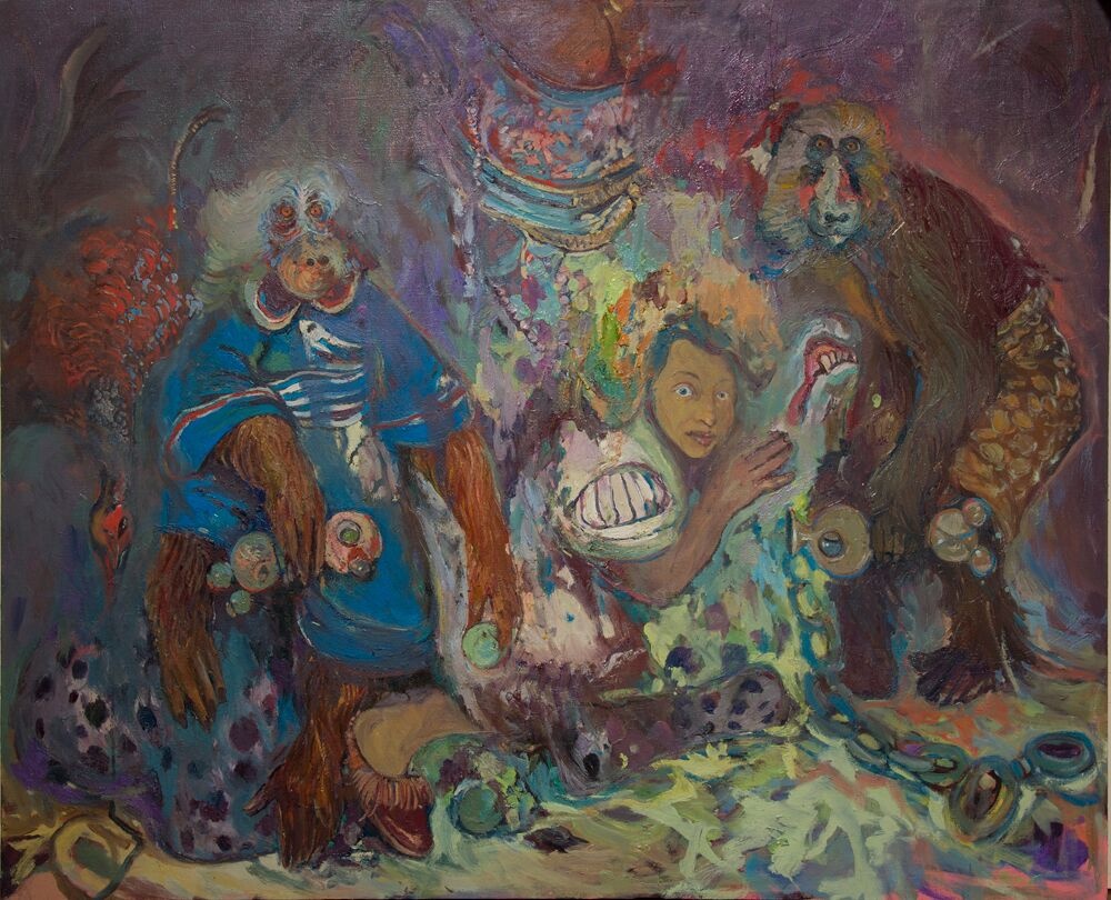 "Umetnik verjame, da obstaja vzporedno več svetov, ki so lahko prav tako resnični, kot je resnična fizična dimenzija. Pravi, da obstajajo svetovi, ki jih ustvarjata umetnost in literatura. Resničnost, ki je ustvarjena na njegovih slikah, razume kot dejstvo. Figura in barva sta ključna elementa njegovega slikarstva. Svet njegovih slik je poln teatralnosti in je postavljen na glavo. V svoji umetnosti se osredotoča na človeka in to, kar je človeško. Pošastnost, ki jo nemalokrat začutimo v njegovih upodobitvah klovnov, izhaja ravno iz majhnosti človeškega uma. Osebe na slikah so ekscentrične, večbarvne in se gibljejo onkraj dolgočasja. Pomembno vlogo v njegovem slikarstvu imajo tudi živali, ki v slike vnašajo dodatno izraznost, zato so njegovi liki velikokrat skupek človeškega in živalskega, kot npr. mož s petelinjo glavo, oseba s konjsko glavo ali z zajčjimi ušesi. Obrazi so ekspresivni, in kot da se zavedajo resničnosti, strmijo v nas z grozečimi očmi. Pravi, da vsako sliko začne delati, kot da gre na neko novo potovanje, in nikoli ne ve, kam ga bo to pripeljalo," je zapisala kustosinja razstave Petra Bizilj Silva.