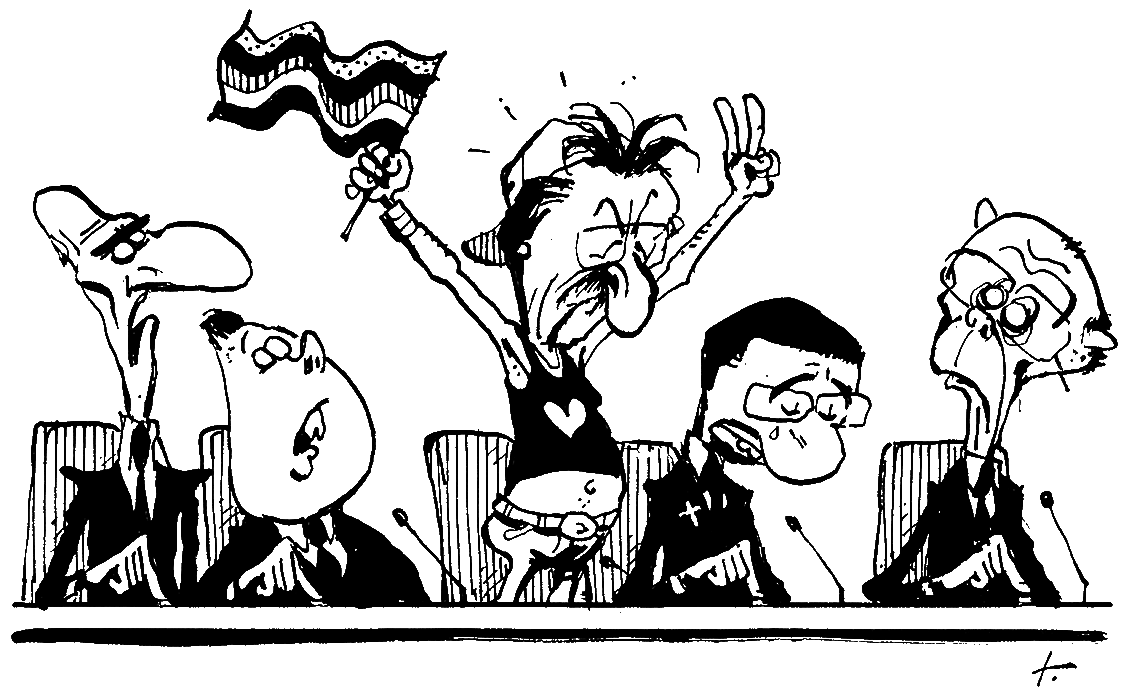 Gejevski lobi je zdaj prodrl še v eno zadnjih trdnjav družinskih vrednot. Ob sprejemanju zakona o istospolni partnerski zvezi je Tanko edini iz poslanske skupine SDS pogumno glasoval ZA. (partner tonko je po hudem notranjem boju pritisnil proti)