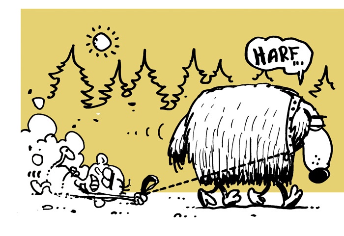 Aleksander, ki ime dobi po stricu, maminem bratu, je svojeglav in trmast otrok. Pri štirih letih se odloči, da bo družinskega psa, velikega ovčarja po imenu Lord, peljal na sprehod. Lord se sprehoda kmalu naveliča in zavije proti domu, oče pa Aleksandra najde, kako se ležeč na trebuhu ves opraskan trdno oklepa povodca in ga ne spusti, četudi ga pes vztrajno vleče naprej.