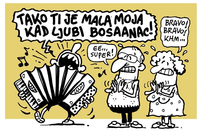 Starši si zelo prizadevajo, da bi se sinova naučila igrati kako glasbilo. Izberejo harmoniko, a se Rok in Aleksander z njo nikoli ne spoprijateljita. Po nekaj mesecih mučenja tipk na harmoniki, učiteljevih živcev in ušes staršev se Aleksander odloči enkrat za vselej rešiti težavo. Harmoniko med počitnicami odnese na bolšji sejem in jo proda neki gospe, starše pa skupaj z bratom prepričata, da so jo pozabili na morju. Kljub luknjam v argumentaciji starši ne vztrajajo pri razčiščevanju primera, saj so ob izginotju harmonike tudi sami olajšani.