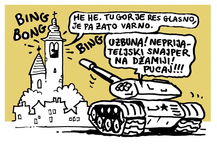 Ob osamosvojitveni vojni ga vpokličejo v teritorialno obrambo in ga namestijo kar v domačem Grosuplju. Postavijo ga za opazovalca na zvoniku tamkajšnje cerkve, kjer ga izda njegovo poznavanje mednarodnega prava. Prepričan je, da se po mednarodnem pravu verski objekti ne smejo napadati, zaradi česar se, če izvzamemo nasilne vsakourne udarce zvona, na zvoniku počuti povsem varnega. Šele med vojno v Bosni in na Hrvaškem se zave, da so cerkve povsem zakonita tarča, če se uporabljajo v vojaške namene. Kljub tej zmoti desetdnevna vojna za Aleksandra mine brez izstreljenega naboja ali omembe vredne akcije nasploh.