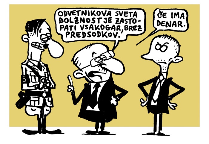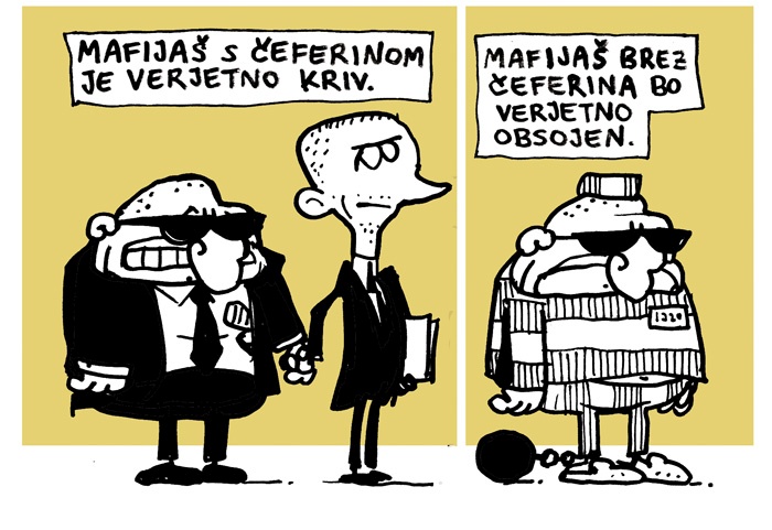 Ljudi, ki ga imajo za mafijskega odvetnika, označi za bedake. Nastane nov slovenski pregovor: »Če kdo pride na sodišče v spremstvu Čeferinov, je gotovo kriv. Če pride brez njih, je pa neumen.«