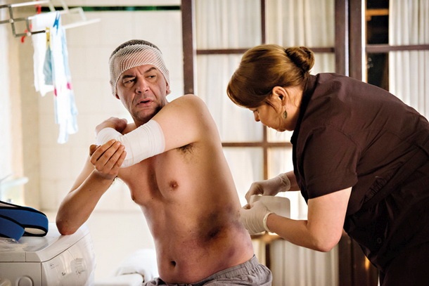 A ironično, tudi Vjeko, ljubitelj “nezemeljske” klasične glasbe, ki na lastni koži izkusi ves strup predsodkov, fobij in paranoj, je natanko tak, le da iz hrvaške ustave ne bi vrgel homofobov in nacionalistov, ki terorizirajo geje, temveč Srbe. Kdo ve, morda tudi geje. Vjeko, skrbni negovalec svojega paraliziranega očeta (Božidar Smiljanić), nekdanjega ustaša, je namreč proustaški nacionalist. Podnevi je gimnazijski profesor – in Ante Pavelić, nekdanji ustaš št. 1, je njegov kurikularni forte. Jugoslavija je bila diktatura, Hrvatom pa je sanje o neodvisni državi vzel velikosrbski in komunistični teror, uči dijake. V njegovi glavi je kaos – ustava od njega terja preprosto preveč.