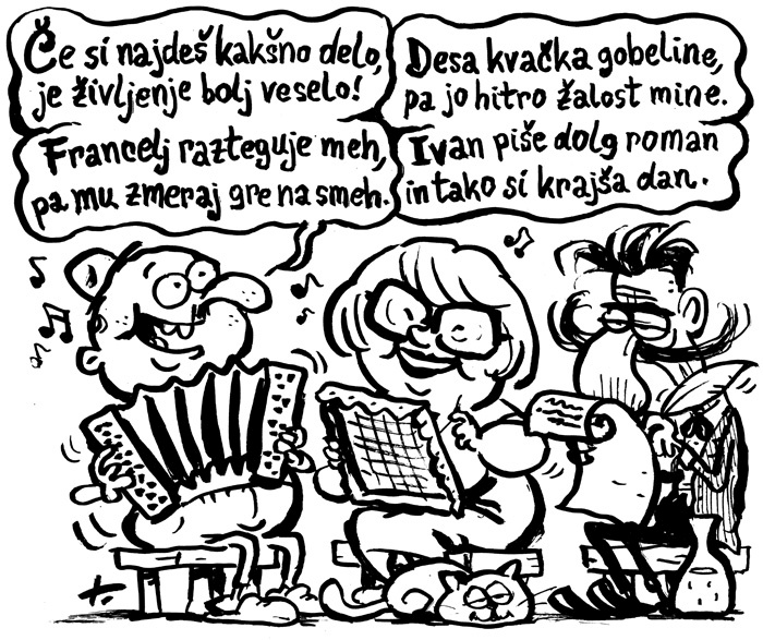 »Pisateljstvo se pri nas sploh ne razume kot poklic, ampak kot nekaj, kar pač moraš početi, da ne bi bil žalosten. Če ne igraš harmonike in ne delaš gobelinov, pač pišeš.«