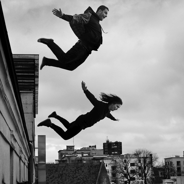 Pomembno si je predstavljati vzporedne svetove. V to misel bi lahko združili bistvo dosedanjega, petletnega ustvarjanja umetniškega tandema, ki je lani prejel osrednjo nacionalno nagrado skupine OHO za mlade vizualne umetnike. Del nagrade je bila samostojna razstava v Galeriji P74, kjer sta novembra svet postavila na glavo oziroma ga zavrtela za devetdeset stopinj.