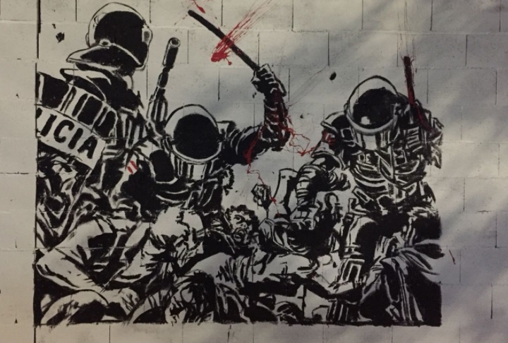 Ilustracija Tomaža Lavriča o policijskem nasilju zdaj krasi tudi zid v mestu Olot