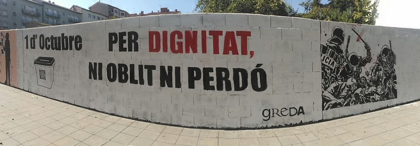 Iz Katalonije so nam poslali fotografije zidu v mestu Olot, ki ga zdaj krasi tudi ilustracija Tomaža Lavriča, ki je bila objavljena na naslovnici 40. številke Mladine, posvečene katalonskemu referendumu.