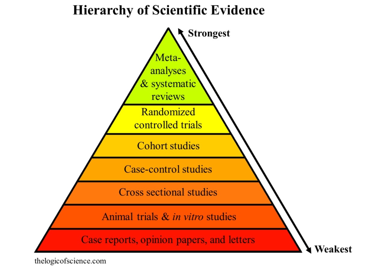 Vir slike: https://thelogicofscience.files.wordpress.com/2016/04/hierarchy-of-evidence-no-not1.png