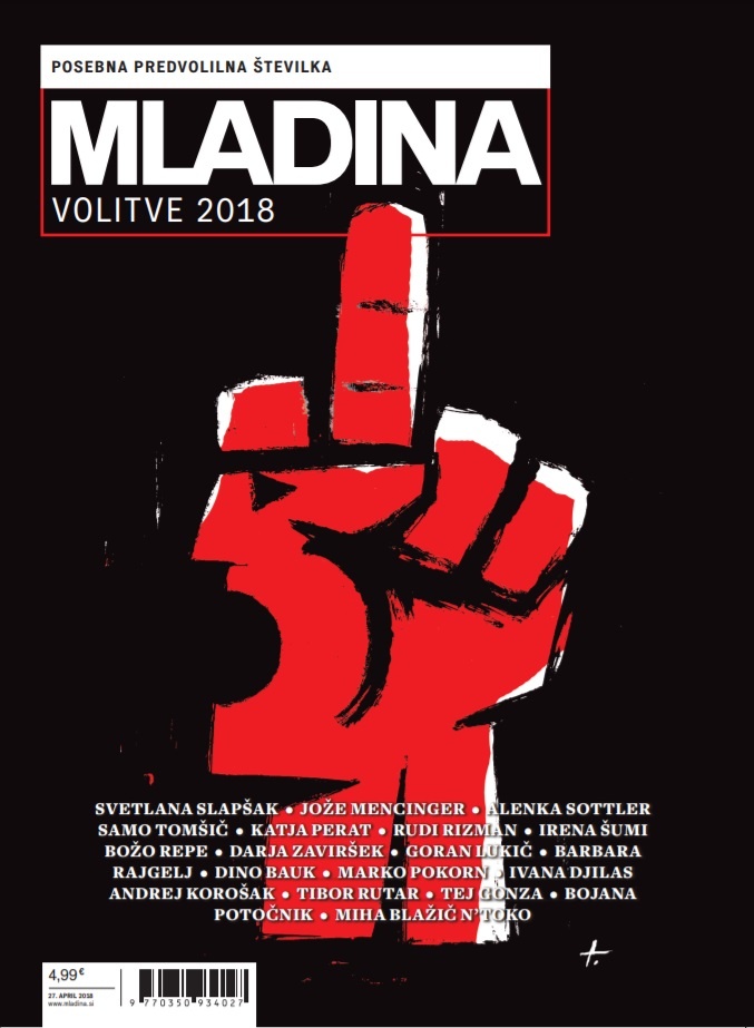 Izšla je posebna izdaja Mladina Alternative: Volitve 2018. Pred prihajajočimi volitvami v državni zbor je razmišljajo kar 19 odličnih piscev: kritičarka in antropologinja Svetlana Slapšak, ekonomist Jože Mencinger, akademska slikarka in ilustratorka Alenka Sottler, filozof Samo Tomšič, pisateljica in pesnica Katja Perat, sociolog Rudi Rizman, antropologinja Irena Šumi, zgodovinar Božo Repe, pravnik in publicist Dino Bauk, zdravnik Marko Pokorn, gledališka režiserka Ivana Djilas, ekonomist Tej Gonza in glasbenik ter kolumnist N'toko. Naslovnico je zakrivil nagrajenec Prešernovega sklada Tomaž Lavrič.
