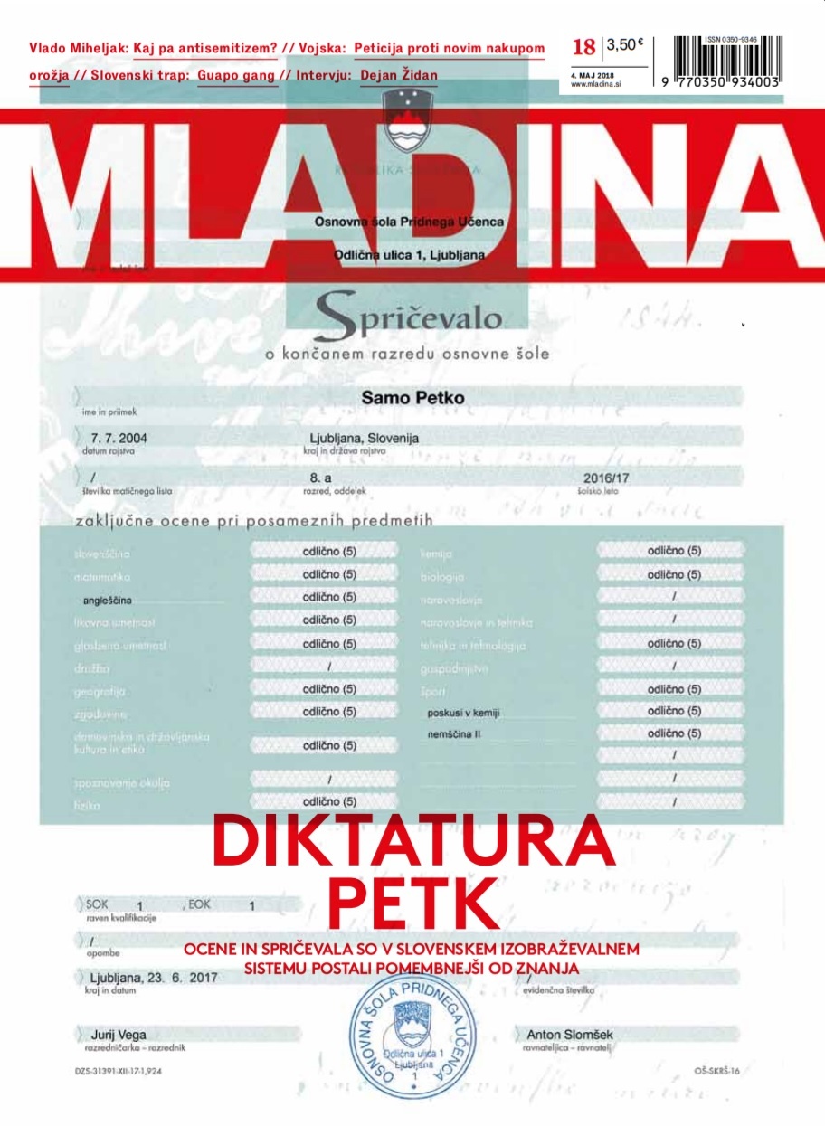 Ocene in spričevala so v slovenskem izobraževalnem sistemu postali pomembnejši od znanja. Več v jutrišnji Mladini!