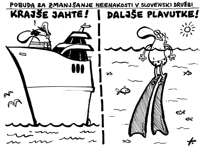 »Ni treba vsem enako. Tudi to ne bi bilo pravično. Ampak mogoče je namesto 30-metrske dovolj 15-metrska jahta, da bo za koga drugega tudi na voljo kakšen zaslužen čolnič ali vsaj plavutke.«