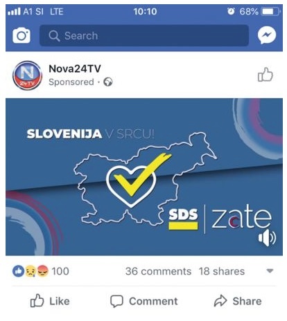 Nova24, ki je dokazano dobila vsaj 800 tisoč evrov od podjetnikov, povezanih z Orbánom, je v predvolilnem času na socialnih omrežjih objavljala plačane oglase za SDS.