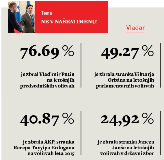 Janševa politika se tako ne razlikuje od politike drugih avtoritarnih populistov, vse od Trumpa pa do Putina. In ko so takšni voditelji izvoljeni, se jim je zelo težko upreti, tudi zato, ker, kot opozarja Rudi Rizman, »odpravljajo demokratične institucije nadzora«, morebiti počasi, a vseeno. Janša vse to počne že dolgo, zanika pomen pravosodnih organov, žali izobražence, v imenu resnice ustanavlja svoji stranki naklonjene medije. »Kadar govorimo o močnih voditeljih, moramo vendarle biti zelo previdni,« še opozarja Rizman, »težava je namreč v zgodovini. Vemo, kako hitro lahko demokracija pade, vemo, kako je ranljiva, vemo, kako lahko po demokratični poti na oblast pridejo totalitarni voditelji. Seveda v Sloveniji ni tako, kot je bilo v Nemčiji in Italiji pred drugo svetovno vojno, a poglejte naokoli, poglejte na Madžarsko, tudi na to, kolikšno podporo je na volitvah zbral Orbán. Pri nas na srečo ni tako hudo, Janšo je na volitvah podprlo zgolj 13 odstotkov vseh volilnih upravičencev. Njegov rezultat je bistveno slabši od Orbánovega.«