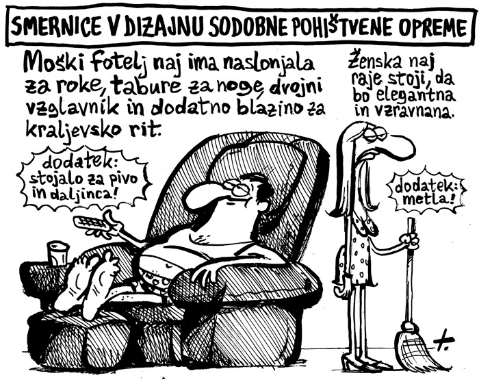»Moški stol je praviloma z naslonjali za roke, ženski pa brez, saj je moški kralj, ženska pa je elegantna in vzravnana.«