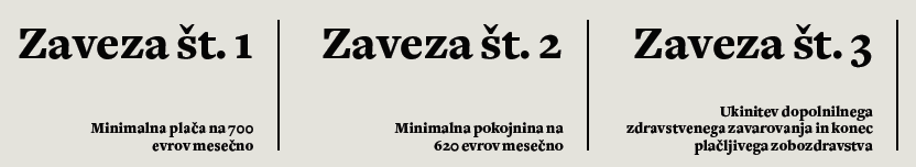 Prihodnja koalicija je končno tudi priznala finančno stisko upokojencev po obdobju krize kot svojo prioriteto, kar je tudi premik. Tako so se zavezali za dvig minimalnih pokojnin na 620 evrov na mesec, pokojnine pa naj bi se odslej usklajevale v enakem znesku in ne več v odstotku. Ob gospodarski rasti več kot tri odstotke se bodo pokojnine usklajevale za en odstotek, ob štiriodstotni gospodarski rasti za 1,5 odstotka ter ob petodstotni gospodarski rasti za dva odstotka. Finančno se breme vzdržnosti pokojninskega sistema – končno, gre za velik napredek glede na prejšnje vlade – prenaša na delodajalce, tako naj bi se prispevek delodajalcev vsako leto povišal za 0,8 odstotka. Delodajalci zdaj namreč plačujejo 8,75 odstotka, zaposleni pa 15,5 odstotka. Do konca mandata vlade Marjana Šarca naj bi se prispevki delodajalcev dvignili na 12,05 odstotka. Bodoča koalicija je tudi odločena poseči v spremembe pokojninske zakonodaje iz časa zadnje Janševe vlade, ki so trdo zmanjšale pokojnine zdaj in v prihodnje upokojujočih se državljanov. Tako naj bi odmerni odstotek za 40 let pokojninske dobe postopno določili v višini najmanj 63 odstotkov, obenem se bo priznal višji odmerni odstotek za skrb za otroke.