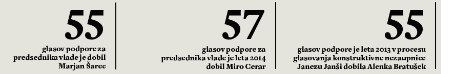 V petek je Marjana Šarca podprlo 55 poslancev, dobil je en glas več, kot je pričakoval. Podpora, ki jo je zbral, je solidna; ko so poslanci leta 2012 Janeza Janšo v drugo potrdili za mandatarja, je dobil manj glasov, zgolj 51. Seveda to ne pomeni, da je bila druga Janševa vlada manj legitimna kot Šarčeva, mandatar postane tisti, ki v parlamentu zbere 46 ali več glasov. Legitimnosti premieru ne dajejo glasovi poslancev, odvisna je od načina vladanja, od politik, ki jih izvaja. Miro Cerar je po veliki volilni zmagi leta 2014 dobil 57 glasov podpore, pa je njegova vlada hitro izgubila podporo med volivci. Podobno je bilo pred desetimi leti, ko je Boruta Pahorja pri kandidaturi za mandatarja podprlo 59 poslancev, dobil je skoraj ustavno večino, a mu je vlada hitro začela razpadati. Niso bile krive samo objektivne okoliščine, kriza, gospodarski zlom, krivi so bili politiki sami, ministri in premier, ki preprosto niso znali vladati. Ni torej nepomembno, kdo vodi ministrske resorje, kakšne so njihove izkušnje, kolikšna je njihova politična moč, politični program, kdo so svetovalci. Ministrska posadka nakazuje, ali bo vlada uspešna ali ne.