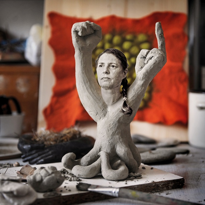 In zakaj je postala kiparka, če bi lahko bila biologinja? »Verjetno zaradi mame,« pravi, »Sonje Tavčar Skaberne, akademske kiparke.« Kot deklica je preživela marsikatero uro v njenem ateljeju in se čudila oblikam, ki so nastajale. Čudenje in radovednost pa sta pravi micelij za domišljijo in ustvarjalnost. In ker se v Sloveniji ne da živeti od umetnosti, občasno tudi restavrira prazgodovinsko keramiko, vodi umetniške delavnice in oblikuje ortopedske pripomočke/proteze.