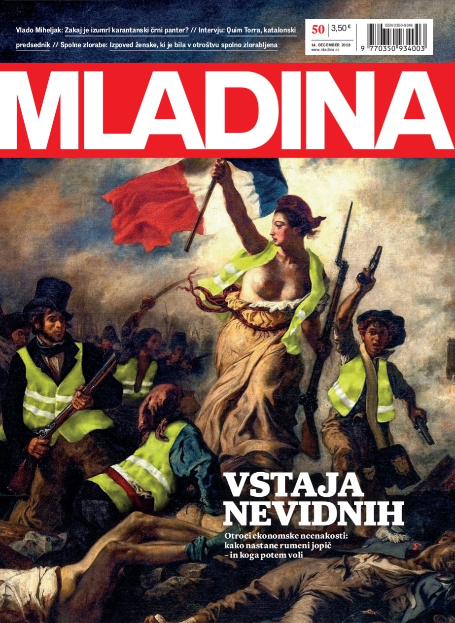 Na naslovnici: Rumeni jopiči, 2018, Pariz & Eugène Delacroix: Svoboda vodi ljudstvo, 1830, Louvre.