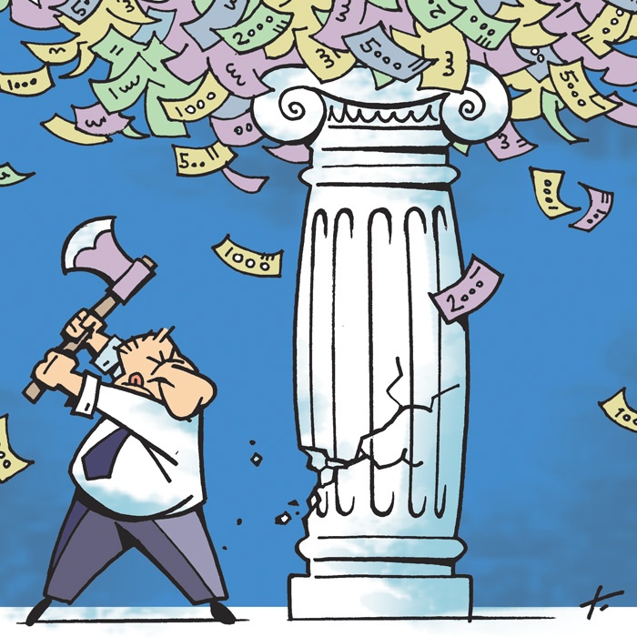 Minister podpira gradnjo s proračunskim denarjem, medtem ko o njeni dopustnosti državni aparat šele presoja! Najbolj nedopustni politični pritisk, a osrednji mediji ga ne problematizirajo. Pač pa se orkestrirano postavljajo v bran pravice Pečečnika, da na terenu stadiona postavi betonski kolos. Nikjer nobene omembe, da mož ne obnavlja stare arhitekture, ampak pod krinko prihaja do gradbenega projekta na področju, na katerem noben investitor ne bi mogel graditi. Ko bi kanil graditi na zapuščenih gradbiščih ob robu mesta, bi dovoljenje seveda že zdavnaj imel. Reč je farsa, o kateri je napisal dramolet absurda arhitekt Janez Suhadolc skozi lik novega japija, ki je hotel postaviti trgovsko središče sredi mesta in je zato podrl palačo NUK, od katere je v prodajnem centru ohranil le grandiozna nukovska vrata.